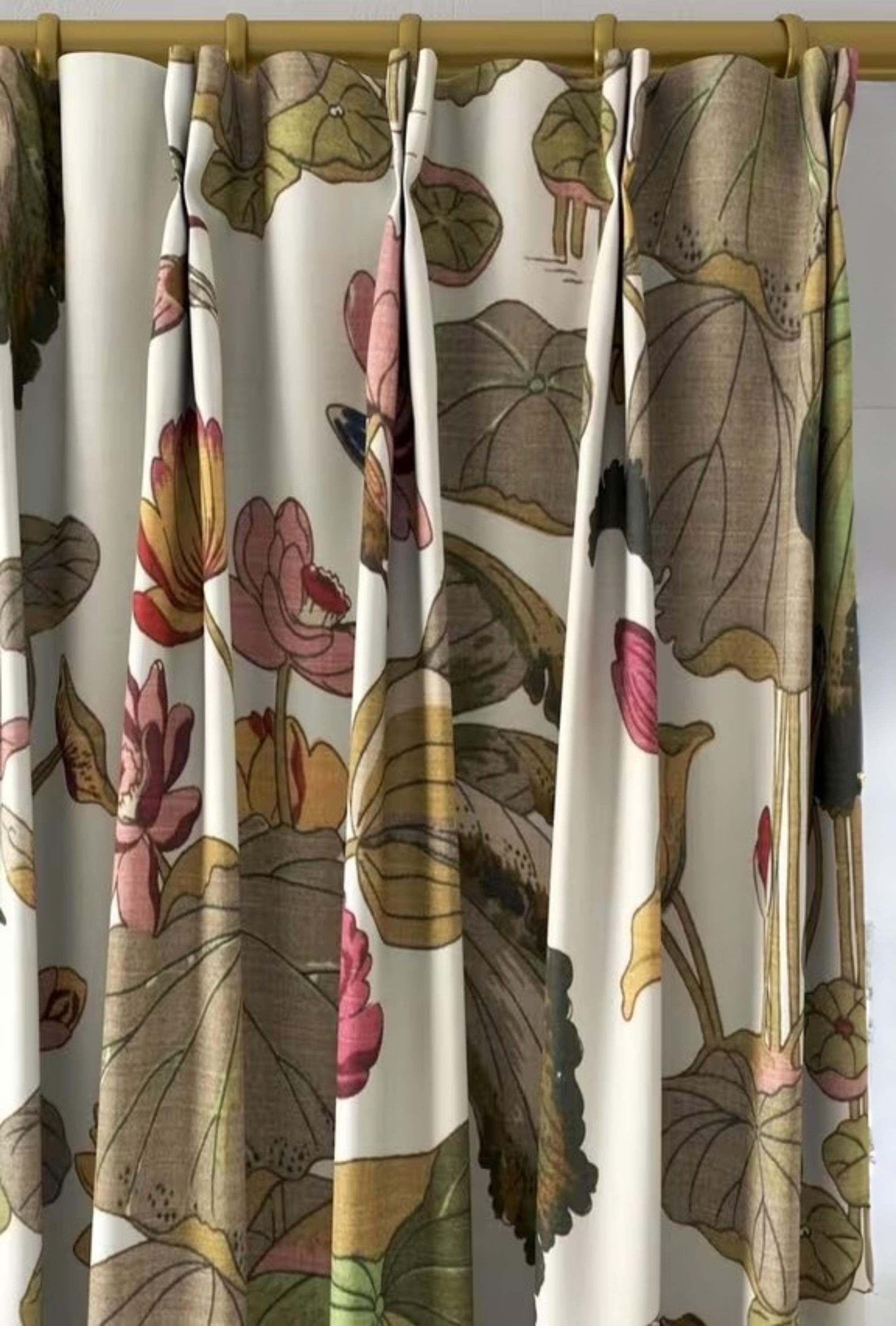 The 100% linen Nympheus by GP & J Baker and Lee Jofa drape is available in any of the color options. Contact us if you would like trim added, or other items created in this fabric to go with your drapes. If you are looking for the Nympheus in a roman shade just message us for a quote.